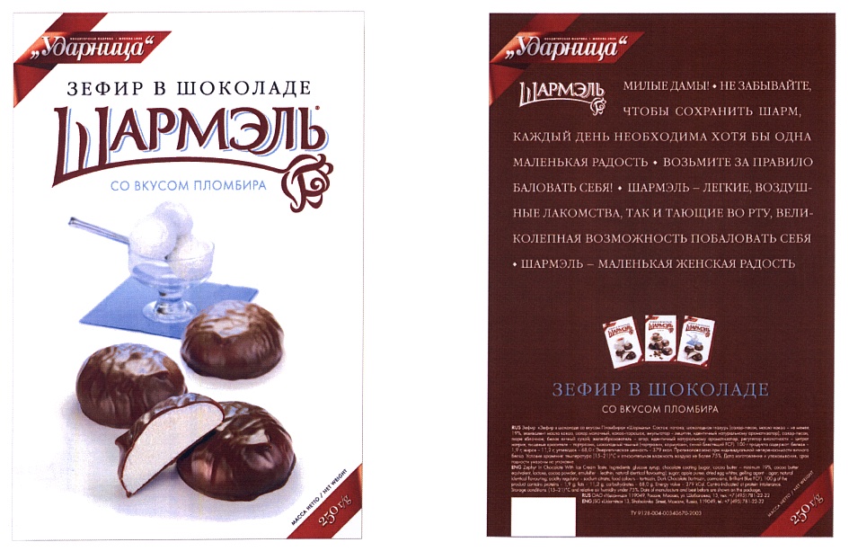 ШАРМЭЛЬ ШАРМЭЛЬ УДАРНИЦА UDARNITSA ЗЕФИР В ШОКОЛАДЕ КЛАССИЧЕСКИЙ МИЛЫЕ ДАМЫ НЕ ЗАБЫВАЙТЕ ЧТОБЫ СОХРАНИТЬ ШАРМ КАЖДЫЙ ДЕНЬ НЕОБХОДИМА ХОТЯ БЫ ОДНА МАЛЕНЬКАЯ РАДОСТЬ ВОЗЬМИТЕ ЗА ПРАВИЛО БАЛОВАТЬ СЕБЯ ШАРМЭЛЬ - МАЛЕНЬКАЯ ЖЕНСКАЯ РАДОСТЬТорговые марки и знаки